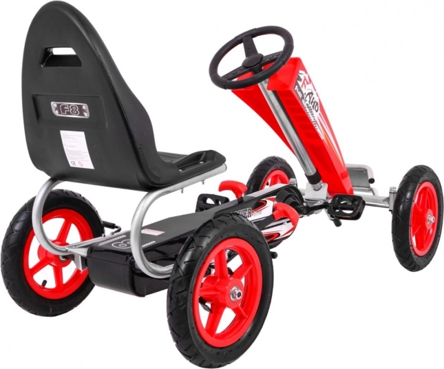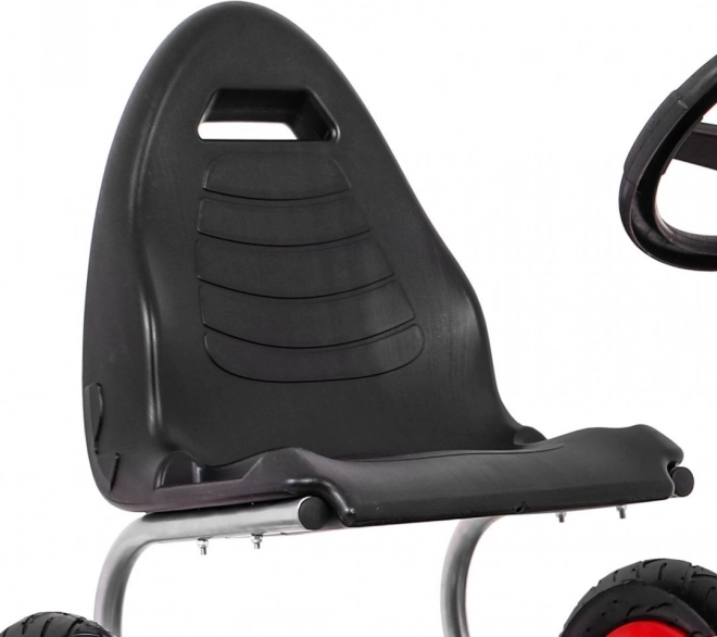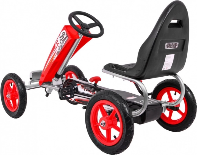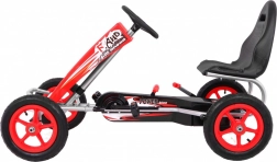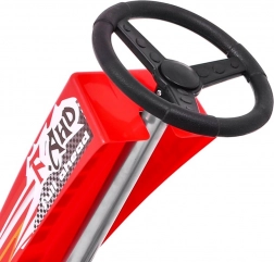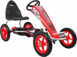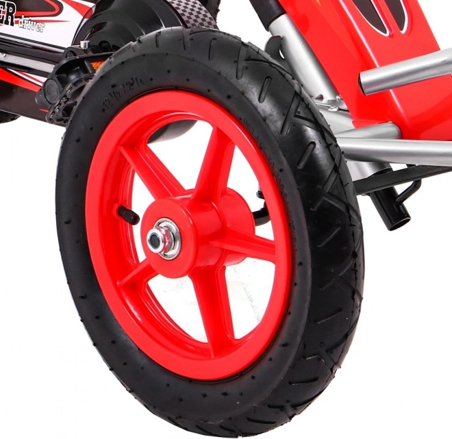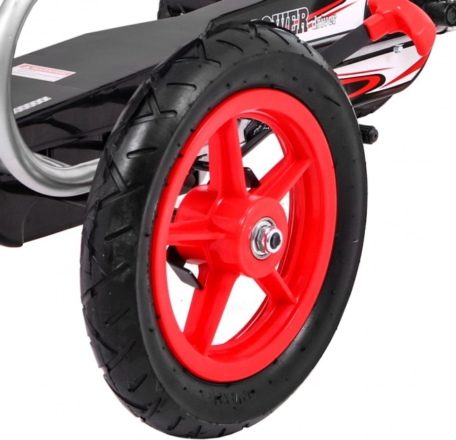 Motokára FULL AHEAD AIR v atraktivní červeno‑černé kombinaci je skvělou volbou pro aktivní děti. Velká nafukovací kola o průměru 32 cm s ložisky na všech kolech zajišťují stabilitu, přilnavost a komfort na různých površích. Krytý řetězový pohon s kovovými ozubenými koly je odolný a nenáročný na údržbu.