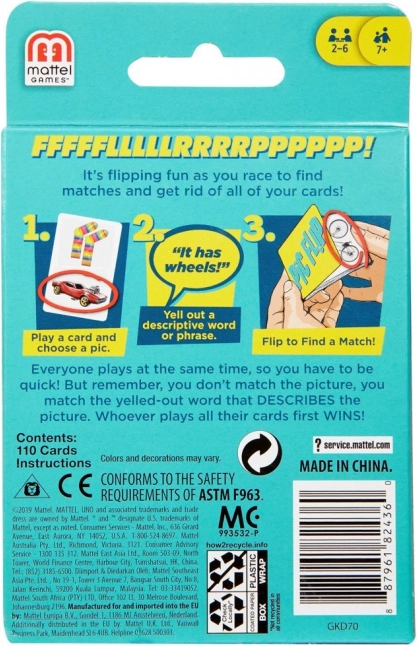 Pic Flip je dynamická karetní hra na postřeh a slovní asociace. Místo shody obrázek–obrázek hledáte kartu, která odpovídá slovu či frázi popisující obrázek. Všichni hrají najednou – odpočítání „3…2…1…Start“ a závod začíná! Kdo se jako první zbaví svého balíčku, vyhrává.