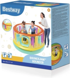 Dopřejte dětem hodiny bezpečné zábavy s nafukovací trampolínou BESTWAY. Díky měkké nafukovací podlaze, polstrovaným stěnám a okénkům pro snadný vstup je skákání, válení i lezení pohodlné a bezpečné. Barevný design podněcuje hru, zatímco pevný vinylový materiál zaručí dlouhou životnost. Ideální pro děti 3–6 let s nosností až 85 kg.