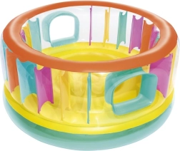Nafukovací trampolína BESTWAY je skvělým herním centrem do dětského pokoje i na zahradu. Měkké, vzduchem plněné dno a pružné boční stěny vytvářejí bezpečné a pohodlné prostředí pro první skoky, rozvoj rovnováhy a koordinace. Dvě vstupní/pozorovací okénka usnadňují dětem vstup a rodičům přehled nad hrou.