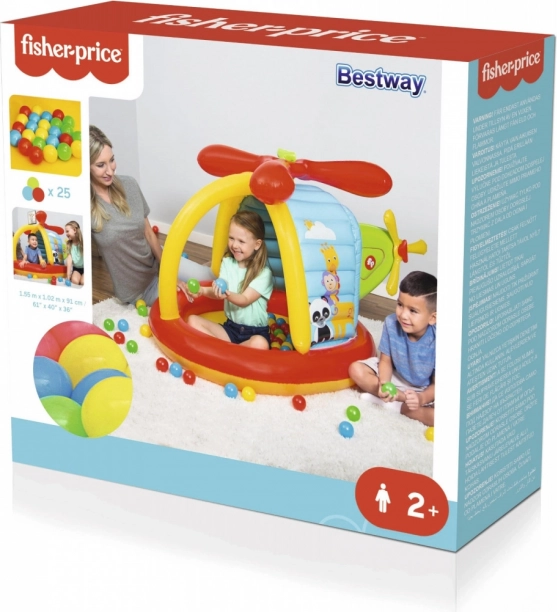 Tento barevný nafukovací vrtulník vytváří měkký a bezpečný prostor pro hraní. Děti si užijí interaktivní prvky, jako jsou dvě odnímatelné vrtule, které lze ručně otáčet, a 25 lehkých plastových míčků. Hravý potisk se zvířátky FISHER-PRICE podporuje představivost a radost z objevování.