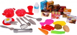 Pánvičky, hrnce s pokličkami, talířky, příbory, kuchyňské náčiní i zelenina, vejce a další „potraviny“ pro nekonečné scénáře hraní.