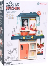 Tato barevná kuchyňka je skvěle zpracovaná, má živé barvy a bohaté doplňky, které podporují kreativní hraní a rozvoj jemné motoriky. Po otočení ovladačů se ozývají zvuky vaření a rozsvítí se červené světýlko. Jeden z hořáků navíc vytváří jemnou páru, díky čemuž hra působí velmi realisticky.