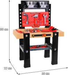 Postavte dětem jejich první dílnu! Stabilní pracovní ponk s háčky, policí a úložnými koši poskytne přehledné místo pro hraní i učení. Sada obsahuje pestrý výběr plastového nářadí a spojovacích dílů, které jsou bezpečné pro malé ruce a skvělé pro nácvik úchopu, koordinace oko–ruka a trpělivosti.