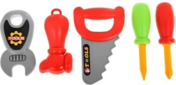 Zahrnuje různé nástroje jako klíč, kladivo, pilka a šroubováky. Každý kousek je v živých barvách pro ještě větší zábavu.