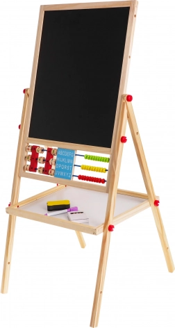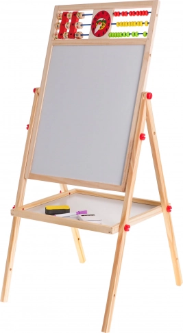 Tato stabilní dřevěná tabule kombinuje kreativní kreslení s chytrým učením. Bílá strana je magnetická pro psaní stíratelným fixem a práci s magnetkami, černá strana je vhodná pro klasické kreslení křídou. Díky nastavitelné výšce se snadno přizpůsobí dětem různého věku a poroste s nimi.