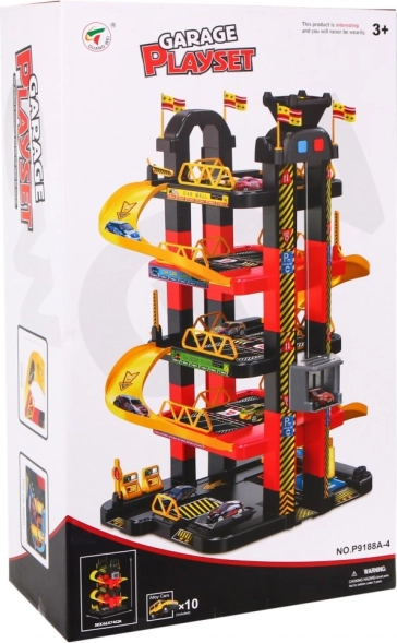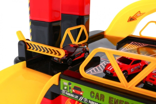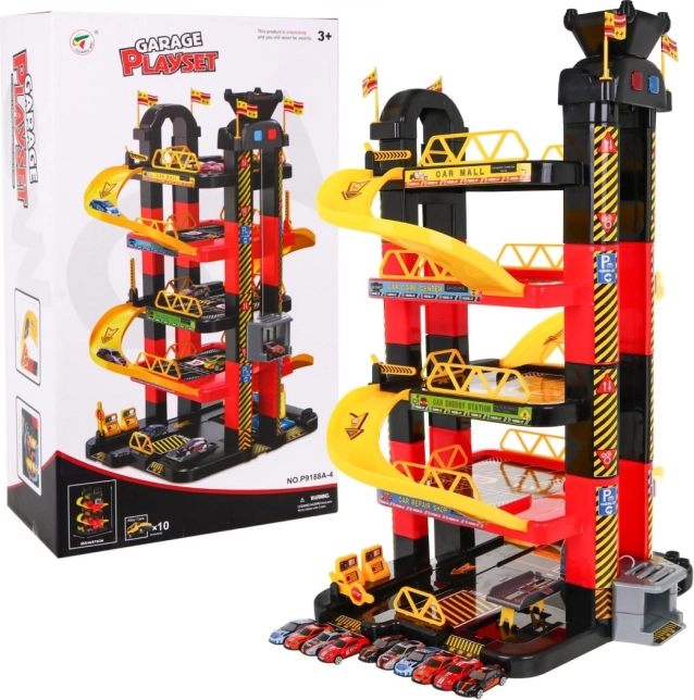 Dětská parkovací garáž nabízí vzrušující hrací plochu s pěti úrovněmi, které jsou přístupné díky výtahu a skluzavkám. Nejnižší patro obsahuje myčku aut, automechanický servis a čerpací stanici. Další úrovně slouží jako parkoviště pro auta, zatímco úplně nahoře je místo pro vrtulník s pohyblivým výtahem se světelnými efekty poháněným třemi bateriemi AA (nejsou součástí sady).