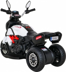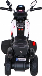 Tato elektrická motorka pro děti kombinuje atraktivní sportovní design s praktičností a bezpečností. Výkonný motor 18 W napájený akumulátorem 6 V/4,5 Ah je ideální pro první jízdní zážitky na dvorku či v parku. Tříkolová konstrukce zajišťuje výbornou stabilitu a snadné ovládání vpřed i vzad.