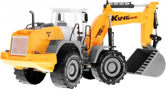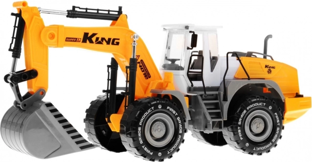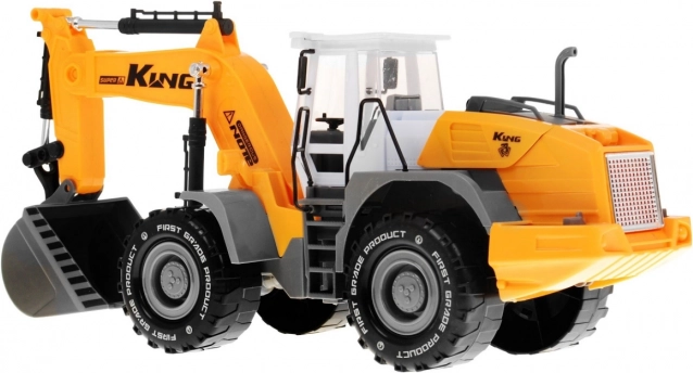 Tento realistický dětský bagr věrně napodobuje skutečné stavební stroje. Díky robustním kolům se snadno pohybuje vpřed i vzad a plynule zatáčí vlevo i vpravo. Otevírací kapota odhalí atrapu velkého motoru, která umocní zážitek z hraní.