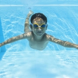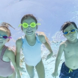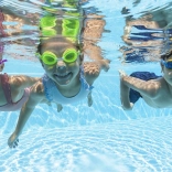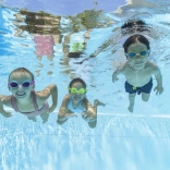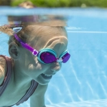Širokoúhlé, nárazuvzdorné čočky zajišťují skvělý přehled pod vodou a lepší orientaci při učení plavání.