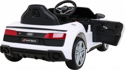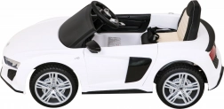 Licencované dětské autíčko Audi R8 s výkonným pohonem 2 × 35 W, baterií 12 V 7 Ah a bezpečným dálkovým ovládáním 2.4G s tlačítkem Stop. Nabízí měkká EVA kola, ekokožené sedadlo s pásy, plynulý rozjezd a LED přední světla. Zábavu zajistí audio panel s USB, MP3 a Bluetooth.