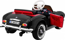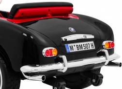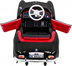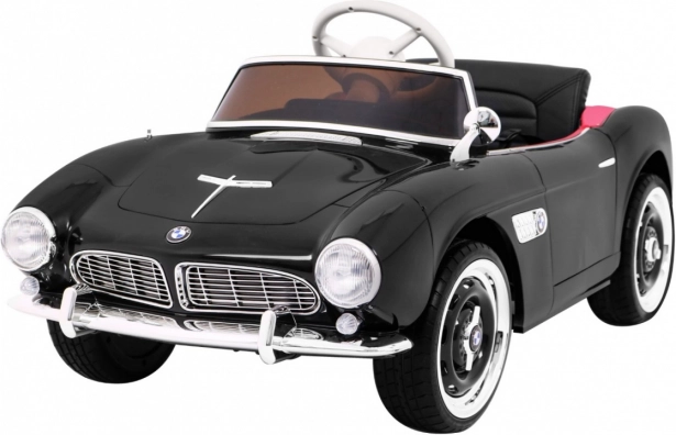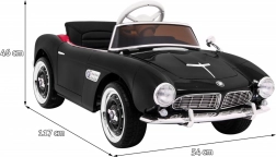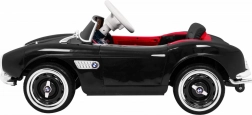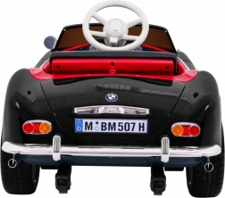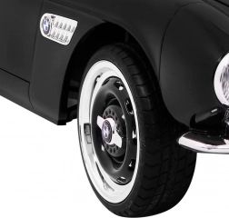 Černý dětský roadster inspirovaný klasickým BMW 507 okouzlí elegantními chromovanými detaily, věrnou maskou a precizně zpracovaným kokpitem. Měkká, větraná sedačka z eko kůže s bezpečnostním pásem a plynulý soft start zajistí pohodlí i jistotu při každé jízdě. Praktické otevírací dveře usnadní nastupování a vystupování.