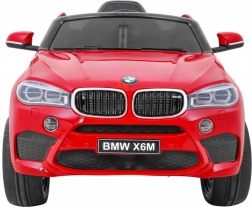 Stylové dětské elektrické auto BMW X6M v lakované červené barvě nabízí dvě výkonné motory 2 × 45 W, bateriový systém 12 V (2 × 6 V/7 Ah), dálkové ovládání 2.4 GHz s bezpečnostním tlačítkem STOP a pohodlnou sedačku z ekokůže s vícobodovými pásy. Kola z EVA pěny, LED světla, audio panel s MP3/USB/AUX/TF a plynulý rozjezd zaručují bezpečnou a zábavnou jízdu.
