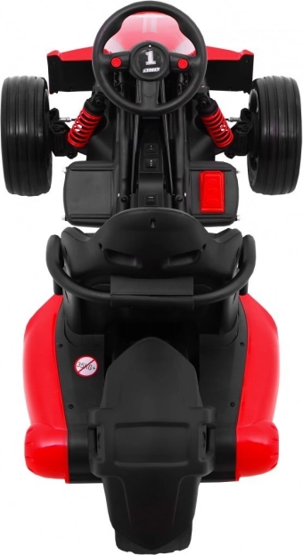 Stylový dětský gokart XR-1 v červené barvě přináší skutečný závodní zážitek pro malé jezdce. Nabízí 2 výkonné motory 2 × 35 W, akumulátor 12 V / 7 Ah, pěnová EVA kola s ložisky, nezávislé přední odpružení a nastavitelnou výšku volantu. Pohodlí a bezpečí zajišťuje profilované sportovní sedadlo s kovovým rámem a stabilní ocelová konstrukce.