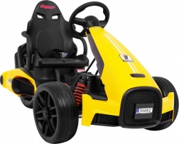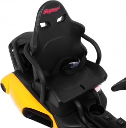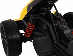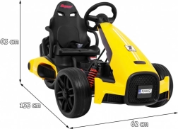 Pro pohodlí a jisté ovládání nechybí nastavitelná výška volantu, sportovní profilované sedadlo s kovovým vyztužením a nezávislé přední odpružení doplněné zadními tlumiči. Dvě rychlosti (Quick/Slow) umožní přizpůsobit jízdu zkušenostem dítěte a klakson ve volantu přidá na realistickém zážitku.