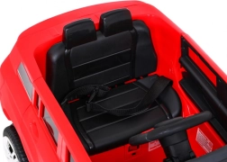 Dálkové ovládání 2,4 GHz s bezpečnostním tlačítkem STOP umožňuje rodičům převzít kontrolu kdykoli je potřeba. O autentický zážitek se starají otevírací dveře, přední a zadní LED světla a zadní tlumiče. Audio panel potěší dětí i rodiče – přehrávání MP3, vstupy USB/SD/AUX a integrované melodie zajistí spoustu zábavy.