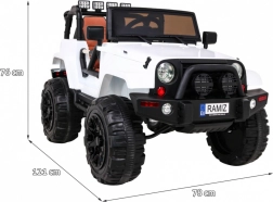 Dětské elektrické autíčko All Terrain Jeep v bílé barvě přináší realistický zážitek z terénního ježdění. Díky výkonným motorům, kvalitním pneumatikám a robustnímu designu je ideální pro dobrodružství na zahradě i asfaltu. Součástí je i ovladač, který umožňuje rodičům mít autíčko pod kontrolou. LED světla a autentické zvuky motoru dodávají jízdě tu pravou atmosféru.