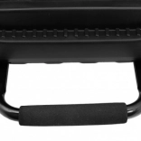 Bezpečnostní funkce zahrnují tlačítko STOP a třírychlostní ovladač, který zajišťuje plynulý start a jízdu. Transport autíčka ulehčuje vytahovací rukojeť na zadní straně.