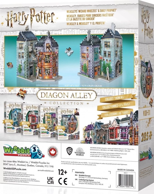 Postavte si ikonickou dvojici budov z Příčné ulice – obchod bratrů Weasleyových a redakci Denního věštce – jako detailní 3D model ze série WREBBIT. Tento set o 285 dílcích z odolného materiálu nabízí pevnou konstrukci bez lepidla, zábavnou výzvu a sběratelský display k HARRY POTTER univerzu.