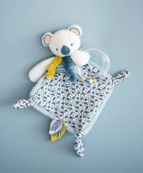 Tato nádherná dárková sada obsahuje plyšovou koalu Yoca, která je ideálním společníkem pro miminko od narození. Dodává pocit bezpečí a pohodlí díky svému hebkému materiálu. Chrastítko s korálky uvnitř kroužku poskytuje stimulaci a zábavu pro nejmenší.