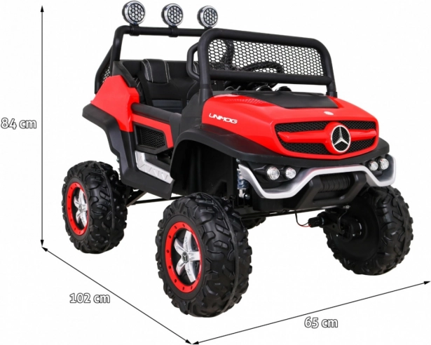 Robustní dětské auto inspirované legendárním off‑roadem Mercedes‑Benz UNIMOG zvládne nerovný terén díky velkým EVA pneumatikám, vysoké světlé výšce a nastavitelnému odpružení. Volitelný pohon 4x4 nebo 4x2 umožní přizpůsobit výkon povrchu, zatímco plynulý rozjezd a volby vpřed/vzad zajistí komfortní ovládání.