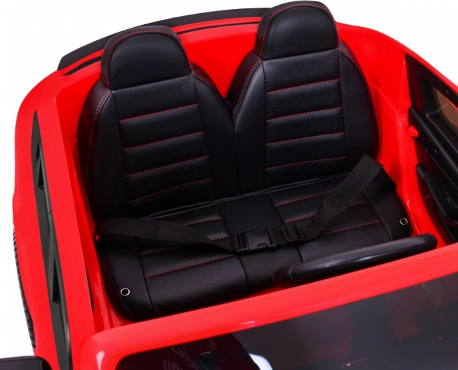 Sedadlo z černé, větrané eko kůže s bezpečnostními pásy poskytuje pohodlí, zatímco dálkové ovládání 2.4 GHz se 3 rychlostmi a tlačítkem Stop dává rodičům plnou kontrolu.