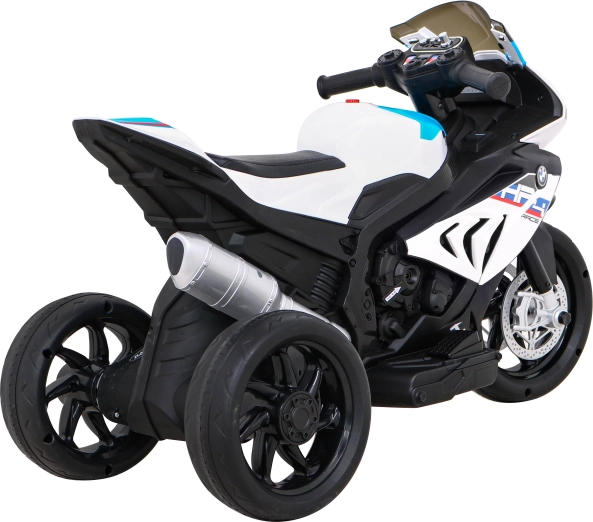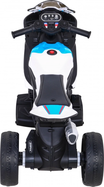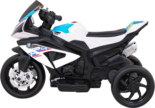 Tato dětská elektrická motorka BMW HP4 v bílé barvě kombinuje sportovní vzhled s bezpečnou stabilitou tří kol. Dva motory 2×35 W a akumulátor 12 V 4,5 Ah zajistí plynulou jízdu vpřed i vzad se 2 rychlostmi, zatímco přední LED světla dodají realistický efekt i lepší viditelnost.