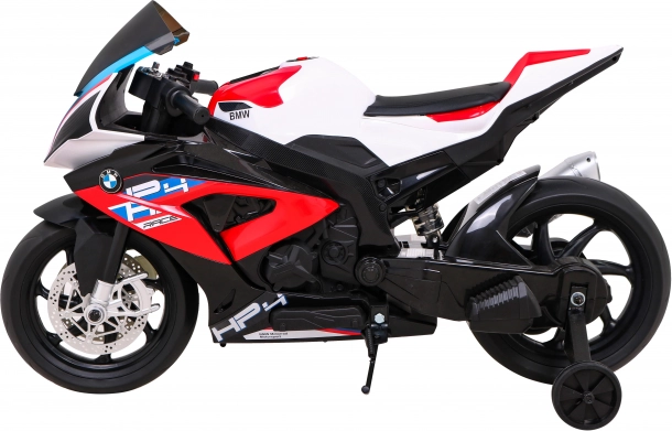 Dopřejte svému dítěti adrenalinový, a přitom bezpečný start do světa jednostopých strojů. Elektrická motorka BMW HP4 potěší realistickým vzhledem, přehledným ovládáním a plynulým Start/Stop tlačítkem. Výkonná 12V baterie 7 Ah pohání dvojici motorů 2x35 W, které spolu s pomalým rozjezdem zajišťují klidný start bez trhnutí.