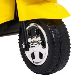 O pohon se stará motor 18 W napájený z akumulátoru 6 V / 4,5 Ah. Tři stabilní kola s gumovým běhounem (19 × 8 cm) zajišťují dobrou přilnavost a pohodlnou jízdu po hladkém povrchu. Zatížení až 25 kg a průjezdnost 7 cm dělají z motorky praktického parťáka na dvorek i do obýváku.
