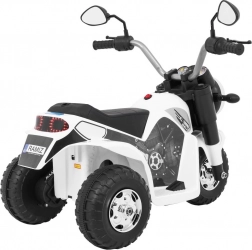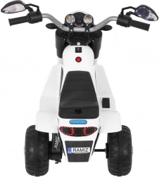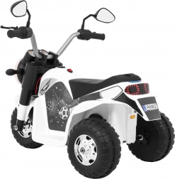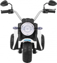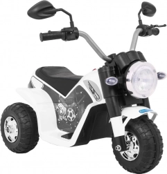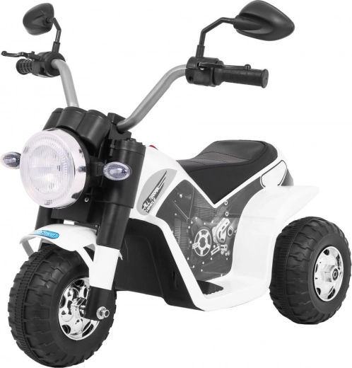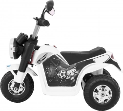 Dětská elektrická motorka MiniBike v elegantní bílé barvě přináší dětem bezpečnou zábavu a první zkušenosti s jízdou. Díky třem kolům je stabilní, má přední LED světla, zvuk startu motoru a melodie na volantu. Pohání ji motor RS380 6 V s akumulátorem 6 V / 4,5 Ah a komfort zajišťuje sedlo z černé ekokůže.
