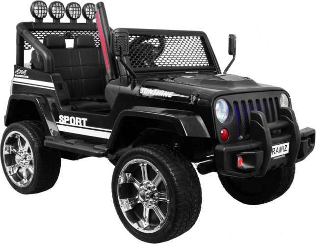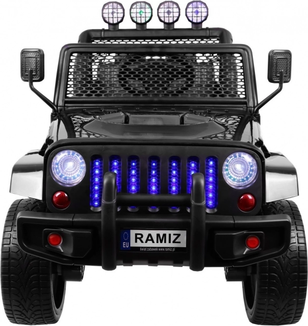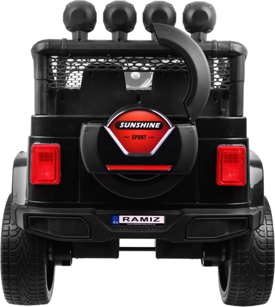 Auto je dále vybaveno LED osvětlením, včetně předních, horních světel a podsvíceného grilu, což zajišťuje skvělou viditelnost i za šera. Dálkový ovladač s třemi rychlostmi a bezpečnostním tlačítkem Stop poskytuje rodičům kontrolu nad autem během jízdy.