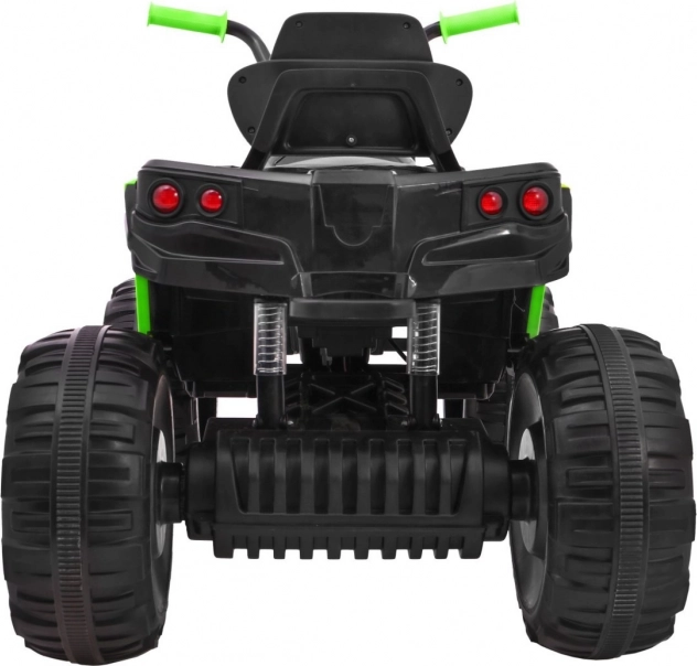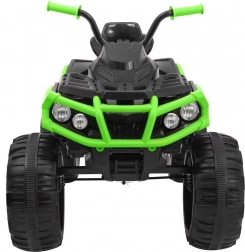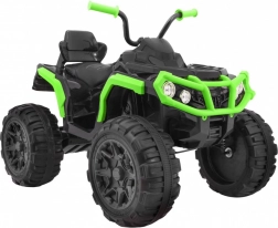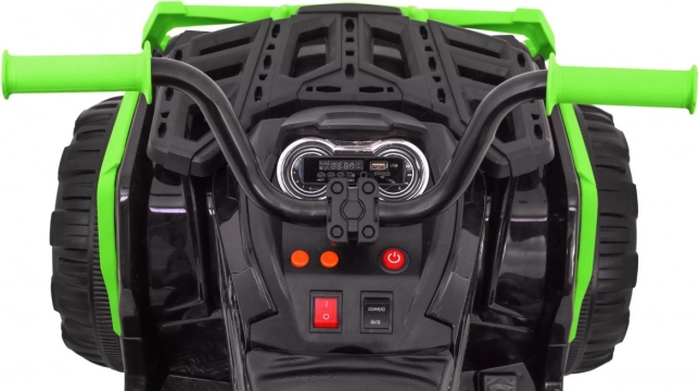 Tato černozelená čtyřkolka nabízí ideální kombinaci funkcí pro dětské řidiče. S pohonem dvou silných motorů 45W, baterií 12V/7Ah a koly z EVA pěny je připravena na dobrodružnou jízdu. LED osvětlení předních a zadních světel, stejně jako možnost přehrávání hudby, zajišťují maximální zábavu.