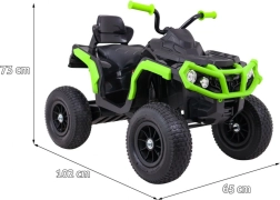 Tato dětská čtyřkolka je ideální volbou pro malé dobrodruhy. Díky dvojitým motorům o síle 2 x 45 W a robustní konstrukci je vhodná pro různé terény. Nafukovací kola společně se zesílenými tlumiči vpředu i vzadu zajišťují plynulou a pohodlnou jízdu.