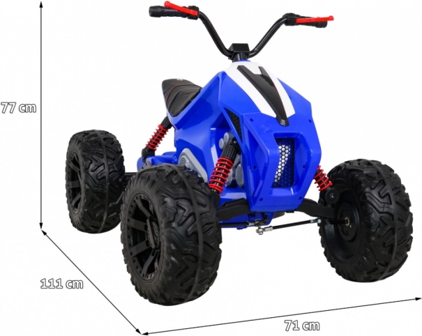 Tato čtyřkolka je vybavena dvěma motory o výkonu 45W a baterií 12V/10Ah, poskytující dostatek energie pro dlouhodobé používání.