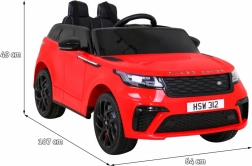Stylové dětské elektrické autíčko RANGE ROVER VELAR v červené barvě nabídne realistický vzhled, pohodlnou jízdu na kolech z EVA pěny a dálkové ovládání 2,4 GHz pro plnou kontrolu rodičů. Dva motory 35 W, plynulý rozjezd, LED světla a audio panel s MP3/USB/AUX zaručí zábavu i bezpečí.