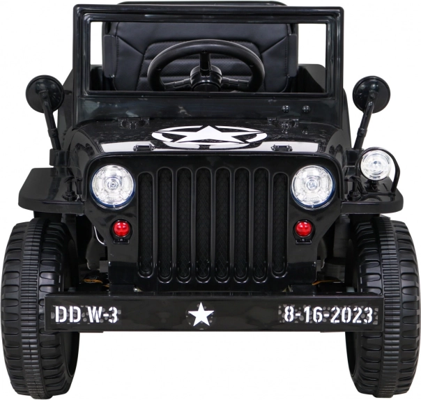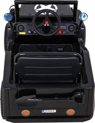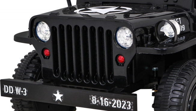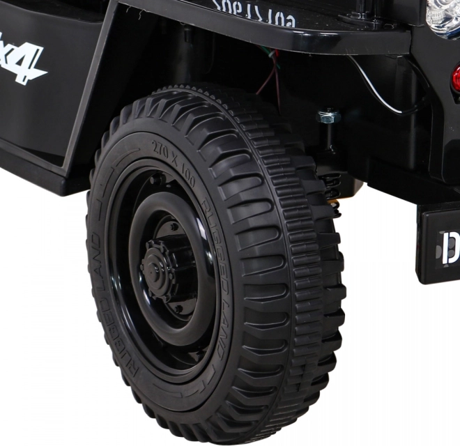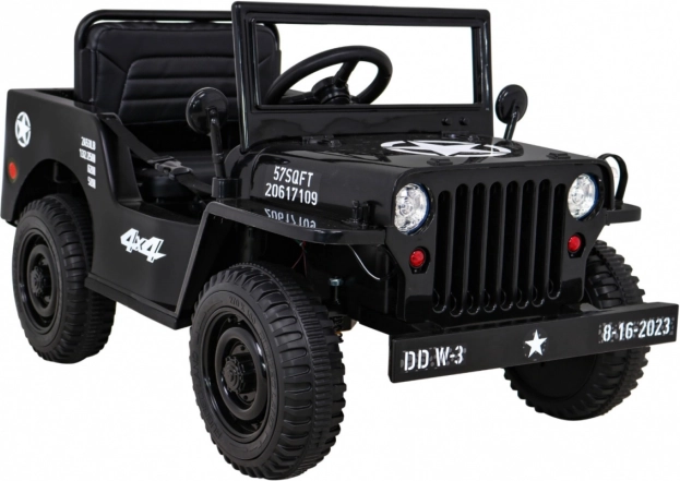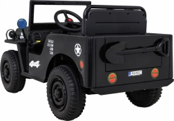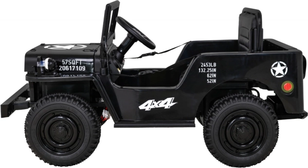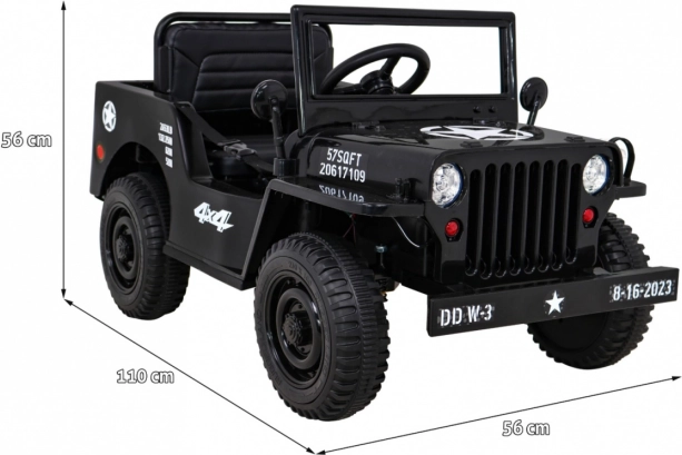 Toto černé dětské elektrické autíčko ve stylu vojenského jeepu potěší malé dobrodruhy autentickým vzhledem, funkčními světlomety a pohodlným sedadlem z ventilované eko kůže. Díky pohonu 4x4, měkkým EVA kolům 26 × 9 cm a tlumičům vpředu i vzadu zvládne nerovnosti i domácí terén. Plynulý rozjezd a volba směrů vpřed/vzad zvyšují komfort a bezpečí při jízdě.