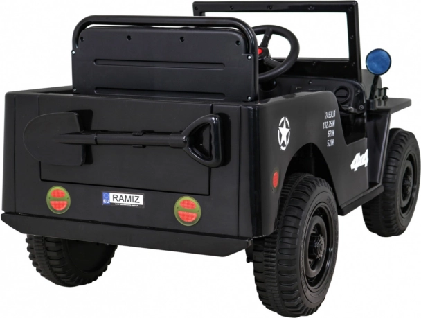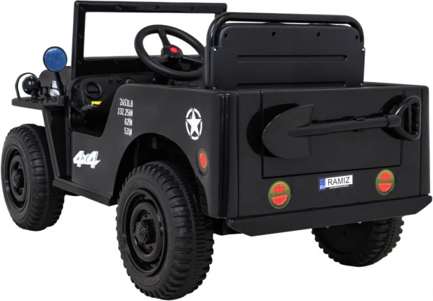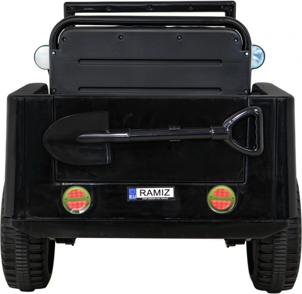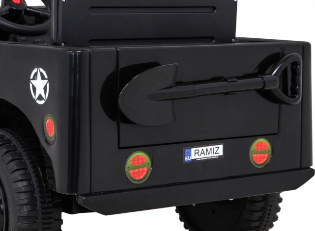 Rodiče ocení ovladač 2,4 GHz se třemi rychlostmi a bezpečnostním tlačítkem Stop. Děti si užijí audio panel s MP3/USB/Bluetooth, klakson v volantu a efektní LED přední světla s vlastní spínačem. Praktické přední i zadní úložné prostory pojmou drobnosti na cesty a přibalená dekorativní lopatka dotváří vojenský charakter.