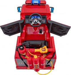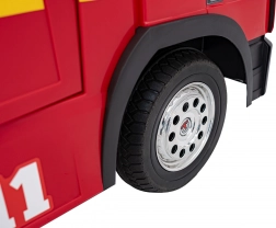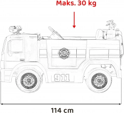 Dětské hasičské auto na baterii 12V je skvělé vozítko pro akční hry na záchranáře. Dva silné motory RS550 a pěnová EVA kola zajišťují plynulou a pohodlnou jízdu, zatímco dálkový ovladač 2.4 GHz umožní rodičům mít nad jízdou plnou kontrolu díky nouzovému tlačítku Stop a volbě 3 rychlostí. Realistický zážitek podtrhují LED světlomety a zapínatelné majáky, zvuk motoru při startu a siréna na panelu.