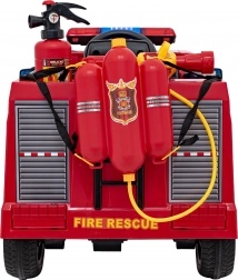 Bezpečnost zajišťují pásy na sedadle, odpružení přední nápravy a stabilní konstrukce s nosností až 30 kg. Otevírací dveře s blokací usnadní nastupování. Součástí je bohatá výbava pro hraní na hasiče: vodní hasicí přístroj, helma a batoh se stříkačkou a nádržemi. Díky skládací rukojeti a přídavným kolečkům vozítko snadno převezete i bez jízdy.