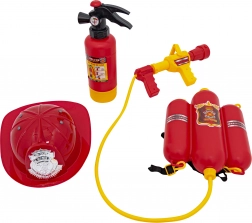 Součástí balení je helma, vodní hasicí přístroj a batoh se stříkačkou a nádržemi – ideální pro kreativní záchranářské mise.