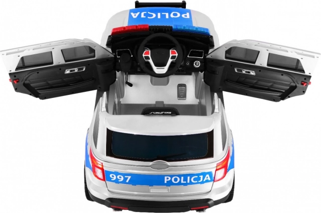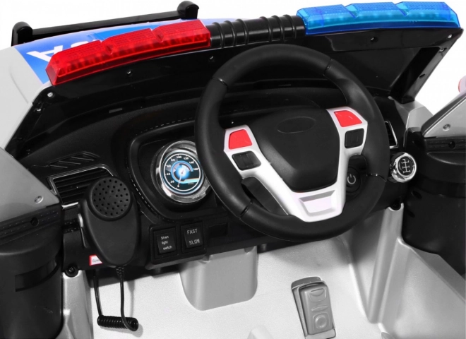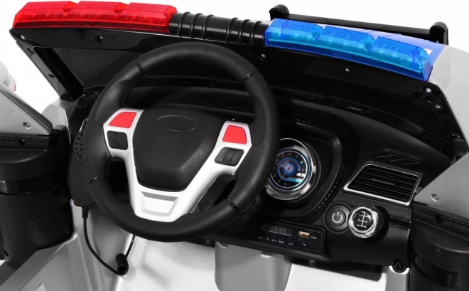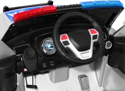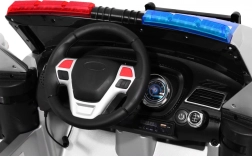 Auto je vybaveno realistickými LED světly vpředu i vzadu, blikajícími policejními majáky a bohatým audio panelem: FM rádio, MP3, SD, AUX, USB i zvuky ve volantu. Velkým lákadlem je megafon propojený s reproduktory a autentické sirény. O pohodlí se starají EVA bezúdržbová kola, 4 tlumiče (2 vpředu, 2 vzadu) a větrané sedadlo z eko kůže. Otevírací dveře a transportní rukojeť s přídavnými kolečky usnadní manipulaci.