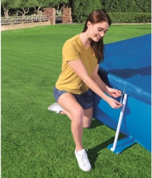 Kryt je navržen tak, aby ochránil váš obdélníkový bazén s rámem o rozměrech 300 x 201 cm. Speciální odtokové otvory na krytu zamezují hromadění vody. Díky integrovaným popruhům jednoduše a bezpečně připevníte kryt ke konstrukci bazénu.