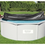 Univerzální krycí plachta Bestway pro bazény s průměrem 396 cm, vhodná pro bazény s rámem i samonosné. Chrání před hmyzem, ptáky, listím a deštěm.