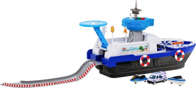 Otevírací střechou můžete odhalit úložný prostor, který je ideální pro připojení zábavné skluzavky pro autíčka, součástí balení je i policie van, vodní skútr a loďka. Podporuje kreativní scénáře a silně stimuluje dětskou fantazii: