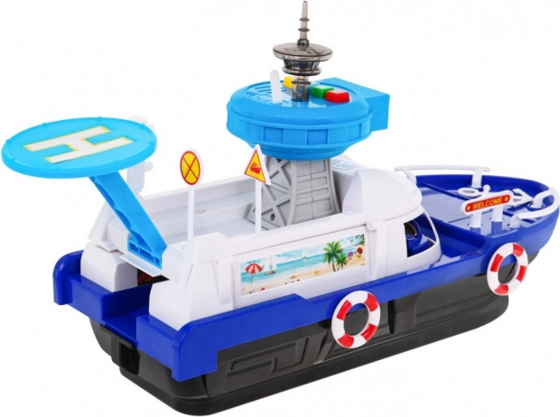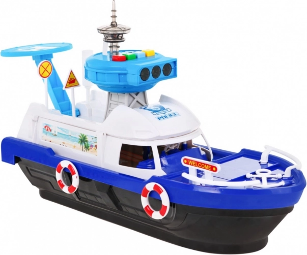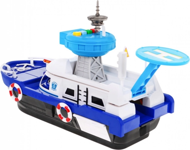 Připojte se k zábavným dobrodružstvím s interaktivní policejní lodí určenou pro děti od 3 let. Tato loď je vybavena funkcemi zvuku a světla, které dodávají realistické herní prvky. Díky kontrolní věži s heliportem a panelu se zvukovými a světelnými alarmy přinese neopakovatelný zážitek.