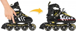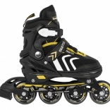 Univerzální dětská sada 4v1 pro zábavu po celý rok: inline, lední i více konfigurací koleček v jednom. Díky nastavitelnému rozsahu 29–33, hliníkovému rámu, kolům z PU 64 mm 85A a ložiskům ABEC‑7 nabízí plynulou jízdu, bezpečné zapínání a pohodlí s měkkou vložkou EVA a ventilací.
