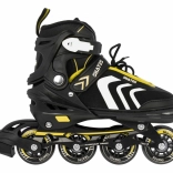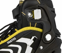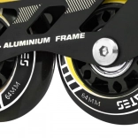 Hliníková podvozková lišta a kola z PU 64×24 mm s tvrdostí 85A v kombinaci s ložisky ABEC‑7 poskytují hladký a jistý skluz. Na ledě oceníte nerezové nože, které jsou odolné a snadno se udržují. Pravá brusle je vybavena brzdou pro bezpečnější zastavení.