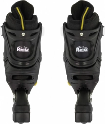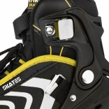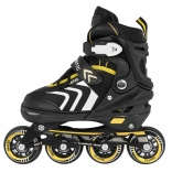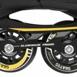 Hladkou jízdu zaručují PU kolečka 72x24 mm s tvrdostí 85A, přesná ložiska ABEC‑7 a pevný aluminiový rám. Pro zimní použití stačí vyměnit podvozky za nerezové nože. Vnitřek boty je komfortní díky EVA pěně, tvarované vložce, polopropustné membráně a ventilaci.