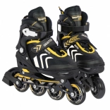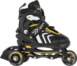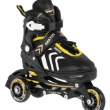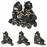 Univerzální dětská sada 4v1 pro celoroční zábavu: inline brusle, kolobrusle i lední brusle v jednom. Díky pětistupňovému systému nastavení velikosti 39–43 roste s dítětem. Aluminiový rám, ložiska ABEC‑7, PU kolečka 72 mm / 85A a nerezové nože zajišťují plynulou jízdu a bezpečí. Pohodlí podporuje polotvrdá konstrukce, větrání a měkká vložka z EVA s materiálem Velvet.