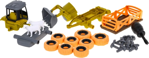 Hračka obsahuje odnímatelný přívěs a pohyblivou lžíci pro realistické farmářské scenérie.